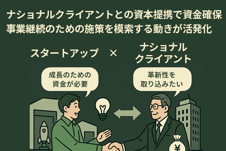 それが今増えている、スタートアップとナショナルクライアントとの資本提携(による資金確保)です。