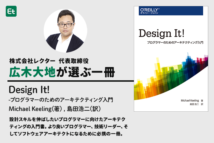 彼が「テックリード時代にこの本があれば、もっとうまく立ち回れたのではないか」と語る一冊が、アーキテクチャ設計の実務を丁寧に解説した『Design It! -プログラマーのためのアーキテクティング入門』(オライリー・ジャパン)だ。