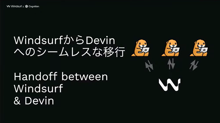 現在、私たちは二つのプロダクトを展開しています。一つはもちろんDevin、そしてもう一つがWindsurfです。このWindsurfをDevinと組み合わせていくことに、私たちは非常に大きな可能性を感じています。