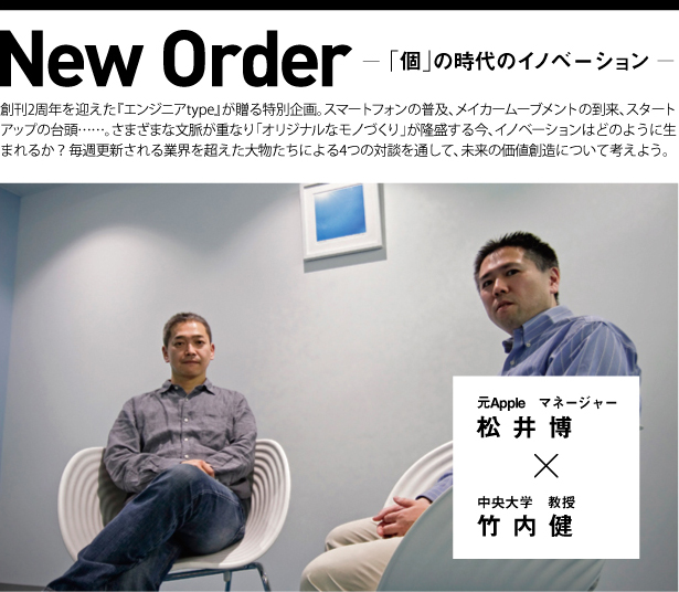 創刊2年を迎えた『エンジニアtype』が送る特別企画。スマートフォンの普及、メーカームーブメントの到来、スタートアップの台頭……。さまざまな文脈が重なり「オリジナルなモノづくり」が隆盛する今、イノベーションはどのように生まれるか?毎週更新される業界を超えた大物たちによる4つの対談を通して、未来の価値創造について考えよう
