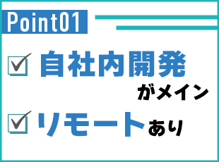 勤務地 基本は自社内(渋谷)での開発となります。 ※プロジェクトによっては、稀にお客様先への出張、またはお客様先での開発をお願いする場合があります。 ★リモートワークOK ★最寄り駅から徒歩圏内の好立地
