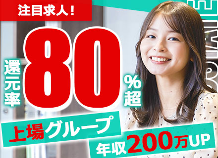 給与 【還元率75~85%+前職給与保証】 月給:30万円~75万円+各種手当+賞与年2回 ★前職給与保証+業界高水準の還元率75%以上 ★待機給与100%支給 ※経験・能力・前給を考慮し決定します。 ※