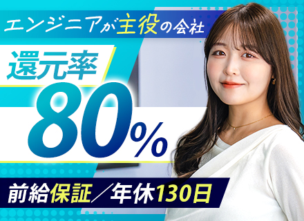 給与 月給35万円~100万円 ★前職給与を100%保証 ★案件単価が上がったら即昇給反映! ★案件内容の開示・明確な評価制度 ※月給は固定残業代を含みます (固定残業代:66,500円~189,900円
