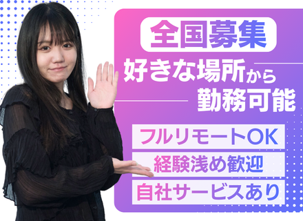 勤務地 <<働く場所は、全国どこでもOKです>> ★フルリモート、リモートOK! ★転居を伴う転勤はなし。U・Iターン大歓迎! ★引っ越し補助有り! ★採用面談、社内業務はすべてWEBで完結! ※原則、全国4