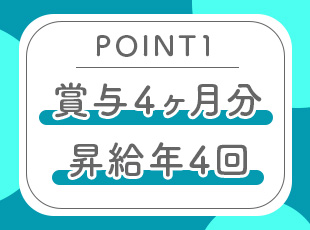 給与 ★資格取得で着実に給与UP! ★賞与2.5カ月分支給実績あり※業績及び勤務成績による 月給23万1500円~+賞与年2回+各種手当 ※経験や能力を考慮し決定します。(例:大卒以上の場合【月給24万
