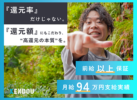 給与 前職給与+αの収入を保証 月給42万円~120万円+各種手当+賞与 給与基準が明確かつ高還元です。 一人ひとりの生活が安定して活躍頂ける環境を目指しています。 ※平均年収650万円 ・還元率83%