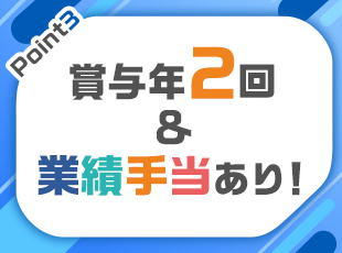 給与 ■月給300,000円~+賞与年2回+各種手当 ※前給やスキル、経験などを考慮のうえで優遇いたします ※上記月給には一律手当を含みます ※裁量労働制のため、深夜残業・休日出社について残業代を支給して
