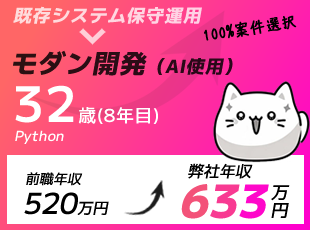 給与 ◆月給30万円~100万円+賞与年2回 ★年収200万円UP実績あり!極力前職から給与がUPする形で打診します ■年収下限保証制度あり■ →オファー時点の想定単価を下回る案件の参画であっても年収を