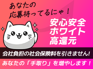 給与 ■月給35万円〜100万円+各種手当 ※固定残業代(月30時間分・4万3,620円~)を含む。超過分は別途全額支給 ※試用期間は6ヶ月。試用期間中の給与・待遇に変更なし ▼還元率87%!平均15