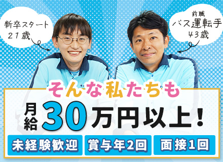 給与 【営業経験がない場合】 ★月給30万円~35万円+賞与年2回 ※固定残業代(月30時間分/5万4,825円~)を含みます。超過分は別途全額支給 【BtoC営業経験がある場合(経験2年以上を想定)】