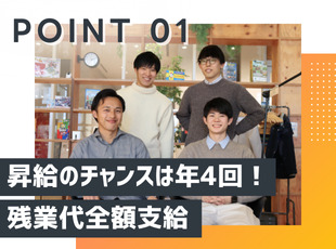 給与 ≪昇給のチャンスは年4回!残業代全額支給&各種手当充実!≫ 月給26万5000円~30万円+賞与年2回+インセンティブ ★経験・スキルを考慮の上、優遇します ★残業代は全額別途支給します ★試用期