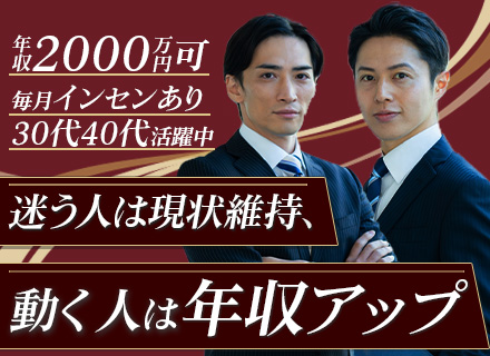給与 ≪初年度平均年収800万円超!入社半年以内で月収150万円超の先輩社員も!≫ ★年収2000万円超も実績多数 ★毎年昇給あり! 【エリアA】 月給35万円~+毎月インセン+特別報酬+交通費+各種手当