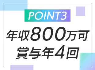 給与 ★月給37.5万円~+賞与年2回(月給3ヶ月分〜6ヶ月分)スタートも可能! └スキルによっては月給90万円スタートの社員もいます◎ └当社の評価基準における等級3の方の給与は、月給37.5万円スタート