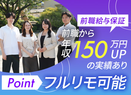 給与 ★前職+年収アップ保証! 【月給40万円~】【平均年収800万円以上】 ※経験・スキルを考慮し決定いたします。 ※試用期間3ヶ月あり(期間中の給与・待遇の差異はありません。) ※固定残業代月18時間