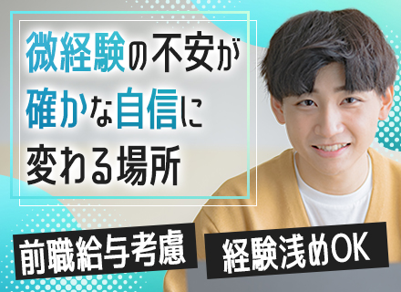給与 ★前職給与考慮あり!面接時にご相談可能です。 【微経験者】 月給:27万円~32万円 【経験者】 月給:32万円~52万円 ┗経験2年以上の方を想定しております。 ★前職給与を最大限考慮します!