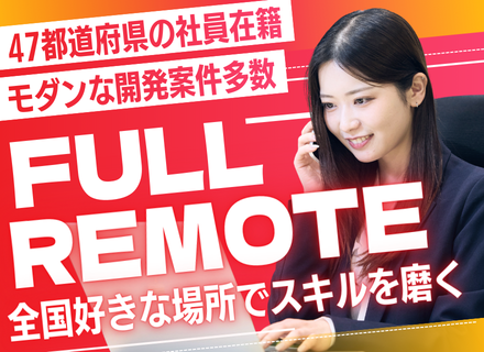 勤務地 ★全国募集!入社初日からフルリモートOK★ 在宅勤務(通勤不要)、もしくは東京23区内のお客様先 ※基本的には在宅勤務となりますが、状況に応じて東京23区内のお客さま先での作業が発生する場合もありま