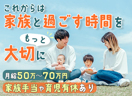 給与 ★月給50万円~70万円 ★年収650万~910万円 ★賞与年2回 ★家族手当など各種手当充実 月給500,000円~700,000円+残業代全額支給+賞与年2回 ※月給は能力や経験を踏まえて決定