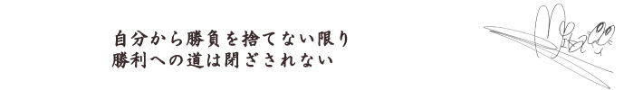 「どんなときもあきらめないでやり切ることだと思っています。過去の経験で言えば、今の監督の指導を受けることになったのも、勝つことをあきらめなかったから。あるレースに臨んだ時、予選が2回あって、1回目はトップで通過したんですが、2回目でスピンをしてしまって。決勝は30番手くらいからのスタートで臨むことになったんです。『もう勝てないかもしれない』と弱気な気持ちがもたげてきたんですが、『最後まで何があるか分からない、やり切ろう』と気持ちを立て直したんです。自分の中で切り替えができたことで、10周レースで1周に付き2台を抜くペースで走り抜け、9位まで追い上げることができたんです。その様子を今の監督が見てくれていて、『一台一台抜いていく姿にハングリーさを感じた』と言って、指導してもらえることになったんです。投げ出して終わりにすることは簡単だけど、あきらめずにやれば必ず自分が納得できる発見がある。その姿勢が大事だと思います」
